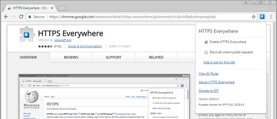 2018年4月3日,EFF发布了HTTPS Everywhere版本2018.4.3,该版本现在支持“持续规则集更新”。此功能允许在用户没有升级到新版Chrome插件的情况下,发布新的规则集。目前已经为此扩展创建了超过23000条规则,您可以点击这里浏览当前规则集。