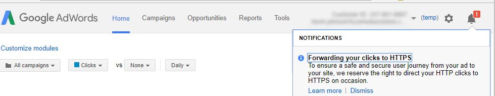 除此通知外,如果广告客户提供未加密的网址,Google还开始警告AdWords中的广告客户。