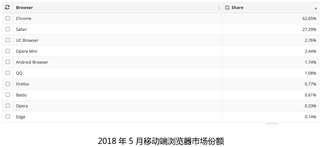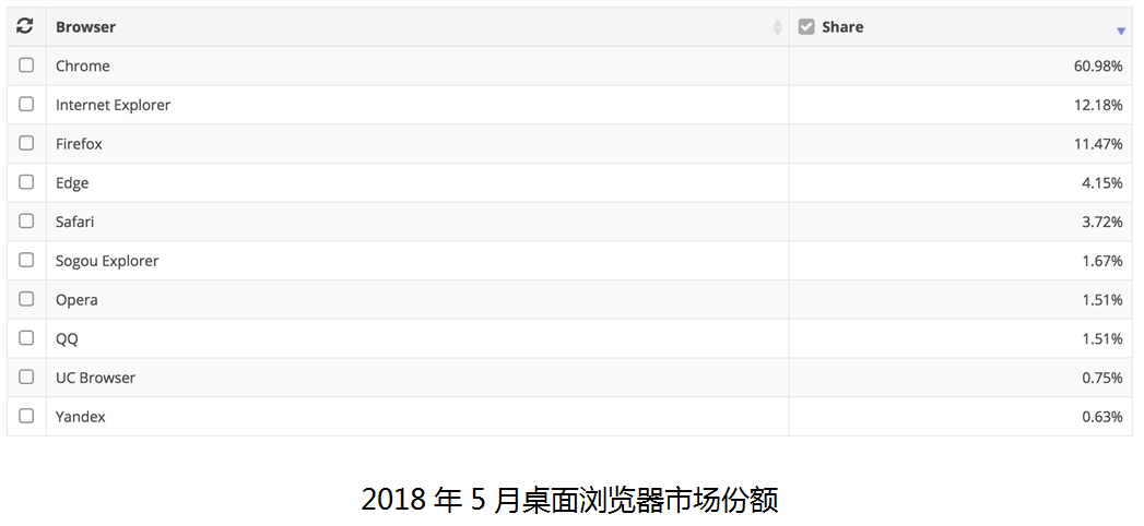 在Chrome浏览器的引领下,其他浏览器也在逐步实施弃用HTTP的计划,FireFox准备将所有HTTP页面标记“不安全”,Safari也对HTTP页面添加“不安全”警告,HTTP页面被警告的范围将越来越大。根据NetMarketShare 公布的2018年5月最新浏览器数据,Chrome、Firefox及Safari等宣布将HTTP页面标记“不安全”的浏览器,几乎占了整体市场份额的80%,移动端方面甚至超过90%。