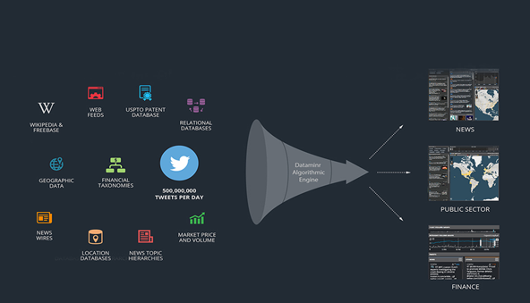 作为一家建立于2009年的企业,Dataminr公司在纽约市、华盛顿特区、伦敦、西雅图以及蒙大拿设有办事处。与众多数据挖掘公司一样,据报道Dataminr也曾经得到过中央情报局(简称CIA)旗下投资机构In-Q-Tel的资助。