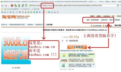在熟悉的正规网站购物时,也莫掉以轻心,仔细查看网站主域名,不要被仿冒域名蒙蔽。通过搜索引擎、图片广告等方式进入网站,更要注意核实是否真实官网还是仿冒的钓鱼网站。常见的仿冒域名方式,以淘宝为例: