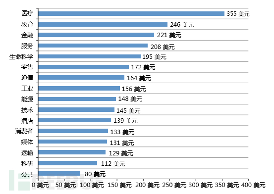 某些行业的数据泄露成本较高。受到严格监管的行业(如医疗、教育和金融企业)的每条记录平均数据泄露成本远高于158美元的整体平均值。公共部门、科研和运输机构的每条记录平均成本则低于整体平均值。