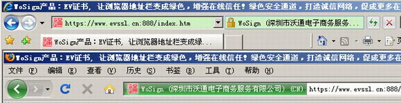 发布日期:2008-11-6据客户反映:VeriSign EV SSL证书在使用IE7浏览器时,能正常显示中文公司名称,但在使用火狐3访问时无法正常显示中文(乱码),如下图1所示。这当然不是火狐浏览器的问题,是VeriSign 证书的中文兼容问题。如下图2所示,使用IE7和火狐浏览器访问WoSign EV SSL证书可以正常显示中文公司名称。