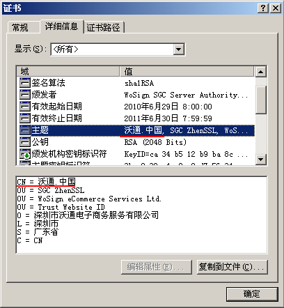 颁发给“沃通.中国” 的 SSL 证书是全球第一个支持 . 中国域名的 SSL 证书,并且是支持中文公司名称和支持强制 128 位加密,如下图 1 和图 2 所示。欢迎广大用户踊跃申请支持 . 中国域名的 SSL 证书。