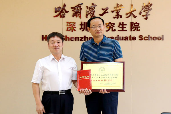 沃通(WoSign)向哈工大教育发展基金会捐赠10万元