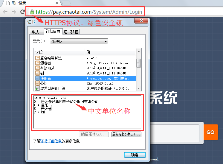 茅台云商平台启用沃通SSL证书,保护网站管理系统