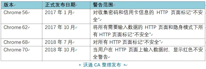 谷歌Chrome主要在Chrome 56、Chrome 62、Chrome 68和未来的Chrome 70几个关键版本中,逐步升级对HTTP不安全警告,最终目标是对所有HTTP页面显示红色不安全警告。
