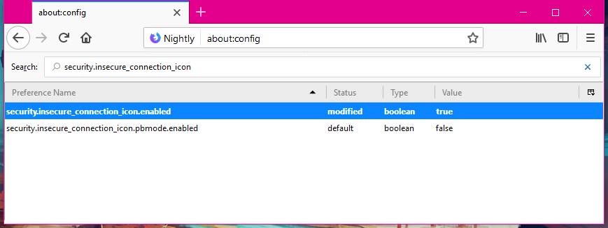 Firefox Nightly 59: 通过隐藏选项可设置对所有HTTP页面显示不安全警告。