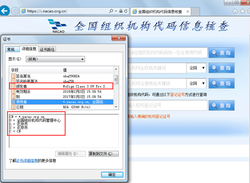 发布日期:2016-09-27全国组织机构代码管理中心的全国组织机构信息核查页面启用沃通超真Pro SSL证书,认证网站可信身份、加密传输核查数据、防止信息被篡改,确保组织机构信息核查的真实性、准确性和权威性。