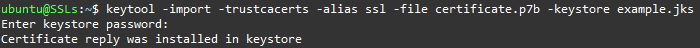 keytool -import -trustcacerts -alias myalias -file file.p7b -keystore mykeystore .jks