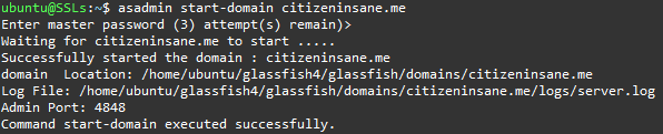 保存更改到domain.xml并启动域:asadmin start-domain example.com: