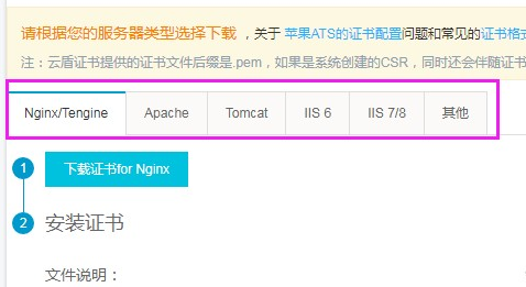 成功在沃通CA申请证书后,会得到一个有密码的压缩包文件,输入证书密码后解压得到五个文件:for Apache、for IIS、for Ngnix、for Other,这个是证书的几种格式,阿里云上需要用到for nginx证书。