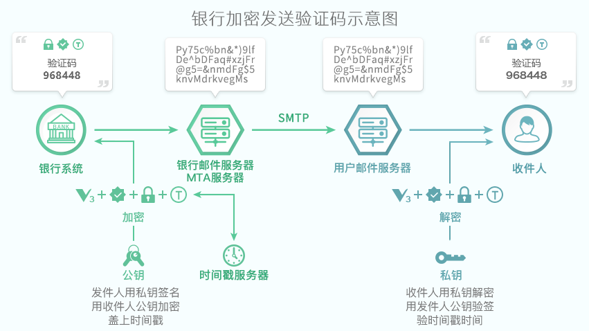 账单推送:银行等金融机构给用户发送电子账单或各种通知都是明文邮件,不仅泄露了用户的隐私信息,而且带来了用户的账户安全问题,各种假冒银行的欺诈邮件使得用户纷纷中招而导致用户财产损失。通过加密邮件给用户发送电子账单等重要邮件,并附有身份认证签名信息,帮助用户有效识别欺诈邮件,保护用户数据安全。