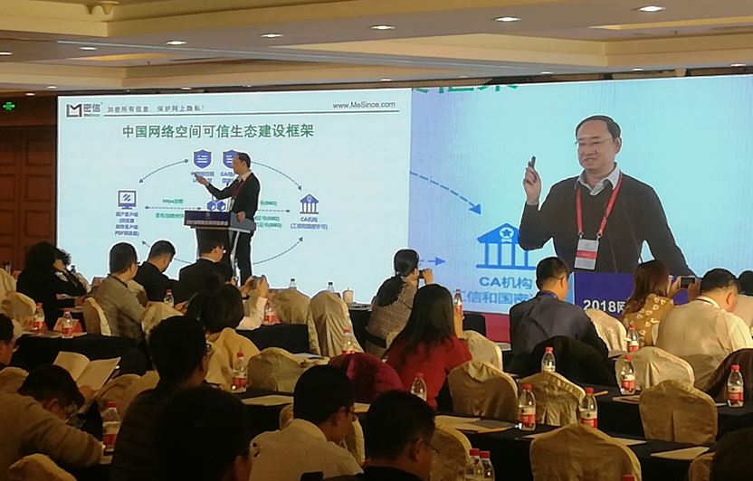 发布日期:2018-12-192018年12月17日-18日,由中央网信办网络安全协调局、国家密码管理局指导,中国电子信息产业发展研究院主办的2018网络空间可信峰会胜利召开,沃通CA旗下全资子公司密信技术有限公司受邀参与本次峰会并展示“密信邮件全加密解决方案”,密信CEO王高华先生在峰会论坛发表主题演讲,并全程参与本次峰会的几大重要议题。