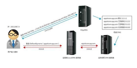 为了解决 LocalDNS 的这些问题,业内也催生了 HTTP DNS 的概念,它的基本原理如下:
