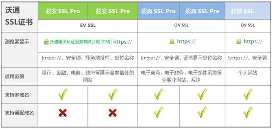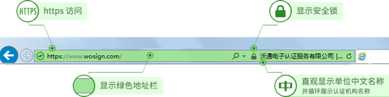 对于需要树立高度可信形象的政务门户网站,沃通推荐选用“超安SSL +超真SSL通配型证书“的组合方式。在官方门户网站上(如:www.domain.gov.cn),使用显示绿色地址栏的超安EV SSL证书,直观展示政务网站可信形象;而在该域名下的其他二级子域名(如:*.domain.gov.cn),可以使用超真SSL通配型证书满足同一主域名下所有二级子域名的SSL证书应用需求。