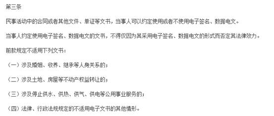 现行的《中华人民共和国电子签名法》是2004年发布,2005年实施的。其中第三条第(二)款规定,“涉及土地、房屋等不动产权益转让的”的文书,不适用于电子文书的使用规定。也就是说,此前在房地产行业应用电子签名实现线上签约,存在一定的法律阻碍。而此次修正案的修改,改变了这一现状,使得土地、房屋转移登记也将允许使用电子文书。将电子签名技术的适用场景,在法律层面进一步扩展,标志着电子签名行业的一个重大里程碑。