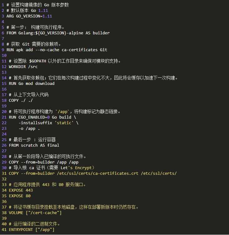 Dockerfile分两个阶段,构建和最终阶段。这使我们能够发送极小的最终镜像-我们甚至可以使用scratch(空的分层)作为基础。上面的代码和Dockerfile最终构建了一个只有7 MB的镜像!