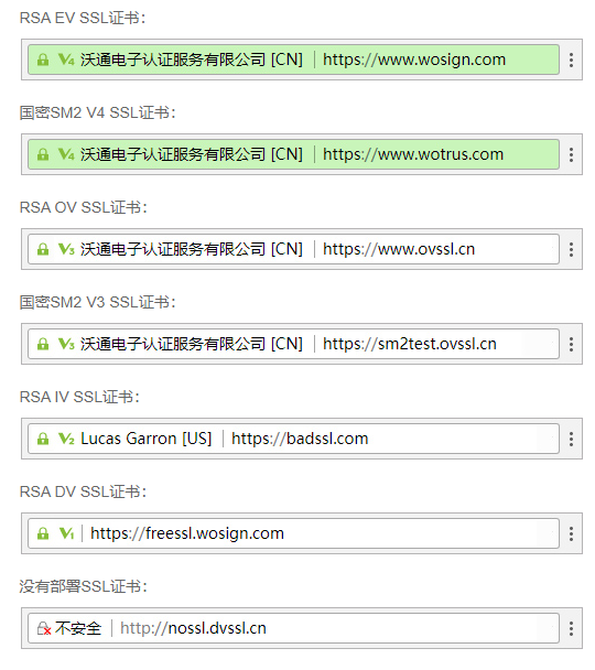沃通CA认为,网站可信身份信息的展示和网站数据传输的安全加密都同等重要,安全加密状态和身份可信状态都应该以易于终端用户判断的方式展现出来。沃通全资子公司密信技术推出的密信浏览器,优化了不同级别SSL证书的展示样式,把通过扩展单位认证的EV SSL证书展示为安全锁、V4标识加单位名称,并显示绿色地址栏;把通过标准单位认证的OV SSL证书展示为安全锁、V3标识加单位名称,白色地址栏;把通过个人认证的IV SSL证书展示为安全锁、V2标识加个人姓名,白色地址栏;把只验证域名所有权的DV SSL证书展示为安全锁、V1标识,白色地址栏;而对于没有部署SSL证书的网站则显示为“不安全”。