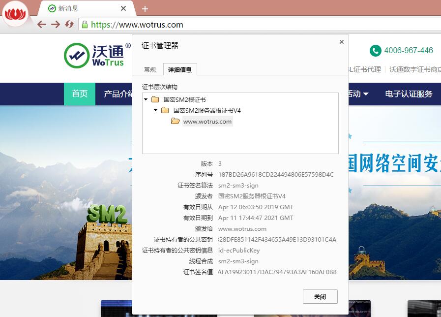 沃通国密SM2 SSL证书正式上线销售,并独家提供SM2/RSA双证书服务,购买国密SM2 SSL证书,配套提供全球信任的RSA SSL证书。沃通国密根证书预置到360安全浏览器。
