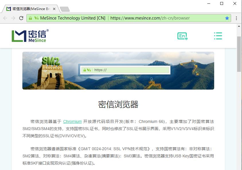 隆重发布密信浏览器全球公测版,支持国密算法和国密SSL证书。