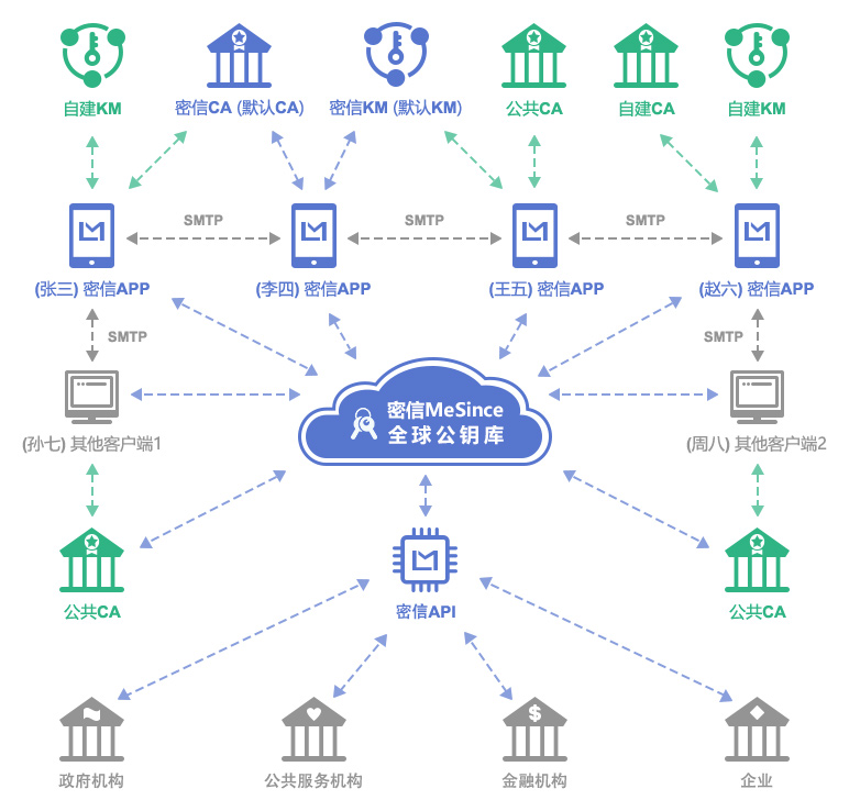 (5)加密设施共享使用:不仅如此,这些“加密基础设施”还免费开放给政府机构、公共服务机构、金融机构和各大企业用于免费获取用户的加密证书公钥,方便各种政务系统和各种管理系统能把现在的自动发送明文邮件给用户改造成自动发送加密邮件给用户,确保这些重要信息系统发出的电子邮件机密信息安全。