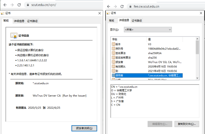 华南理工大学是直属教育部的全国重点大学,为应对新型冠状病毒肺炎疫情,按照中央决策部署以及教育部、广东省工作要求实现“停课不停教、停课不停学”,通过远程教学教务管理,保证教学秩序、教学进度和教学质量。华南理工大学通过教务管理系统、VPN系统、校园统一支付平台等信息管理系统,为师生提供报名缴费、学籍事务管理、线上选课报名、线上教学资源等服务,相关重要信息管理系统均部署了沃通SSL证书,采用HTTPS加密协议保护信息系统数据传输安全,保护师生个人隐私信息及高校教务教学数据的安全性,保障信息系统身份真实可信,防止中间人攻击、钓鱼攻击等安全事件威胁,维护疫情期间高校教务教学秩序的稳定。