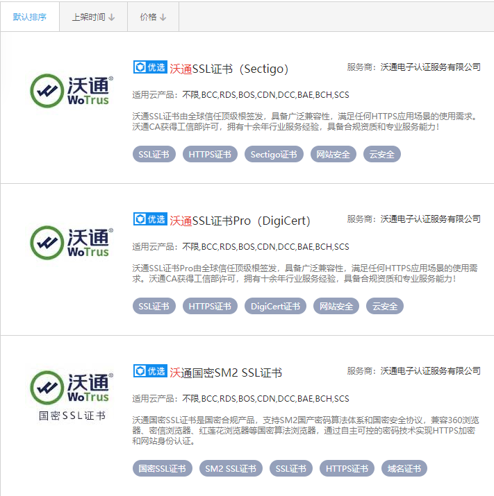 沃通SSL证书及国密SSL证书入驻百度云市场