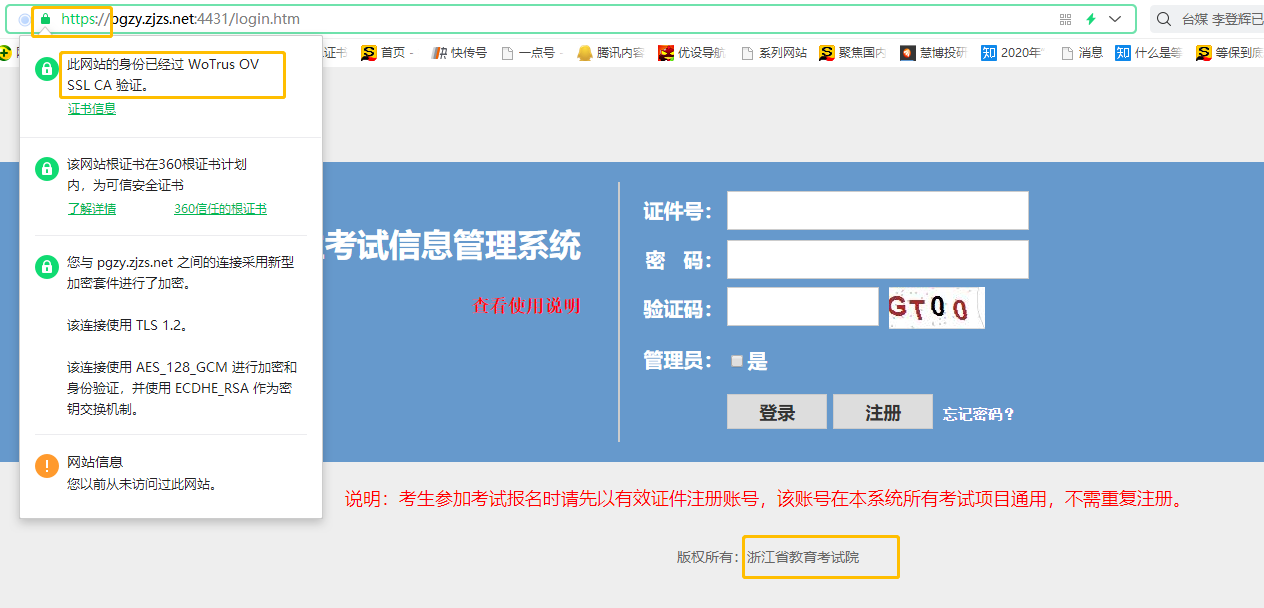 图3 浙江省高校招生考试信息管理系统经沃通SSL证书加密