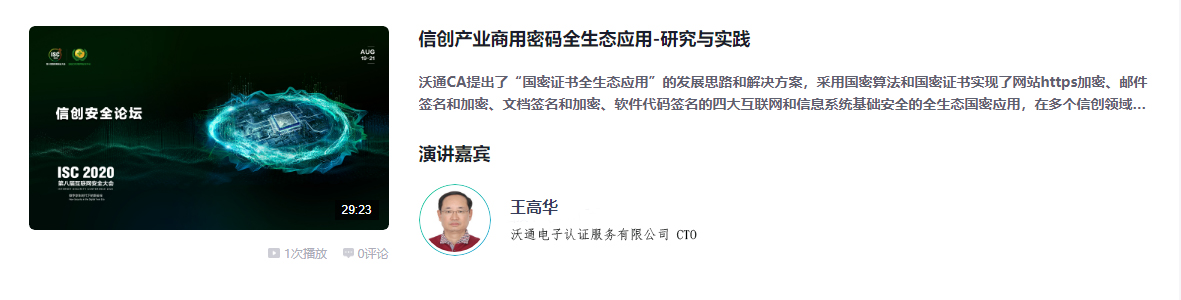 沃通受邀参加2020年ISC 万人云峰会,于8月8日正式上线