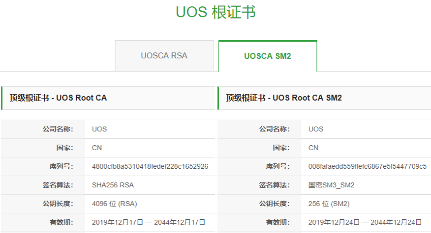 国密SM2根证书支持签发国密SSL证书、国密代码签名证书、国密客户端证书(邮件证书和文档签名证书),可覆盖信创体系下各类国密数字证书的应用场景。
