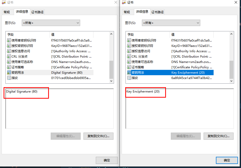 现在相信你很快能分辨出下面的图片中哪个是加密证书,哪个是签名证书了~