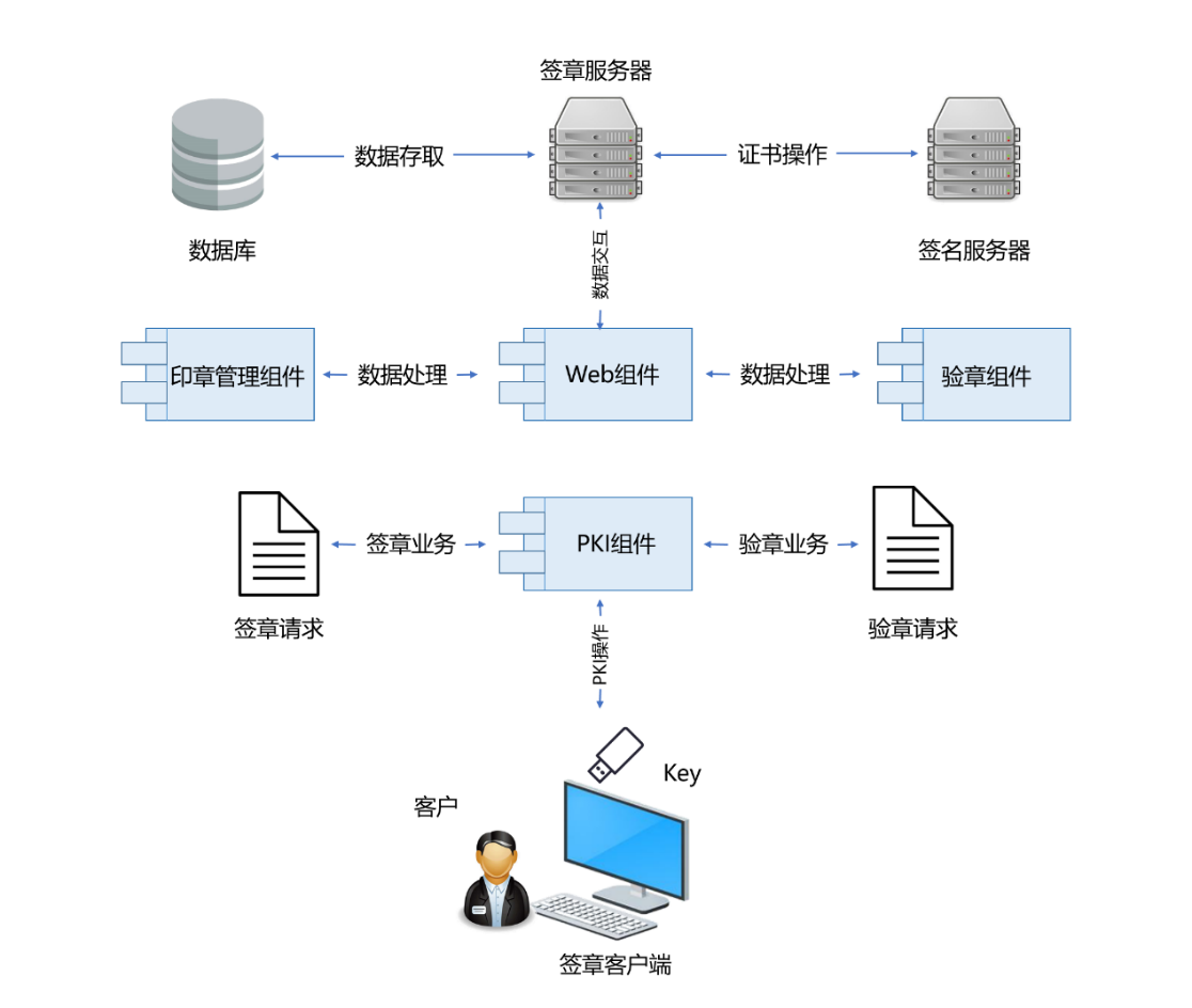 电子签章是将传统印章与电子签名技术进行结合,通过采用组件技术、PKI技术、图像处理技术以及密码技术,按照公钥密码技术标准体系,以电子形式对电子文档进行数字签名及签章。