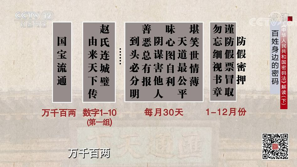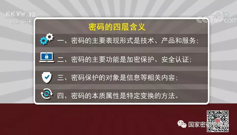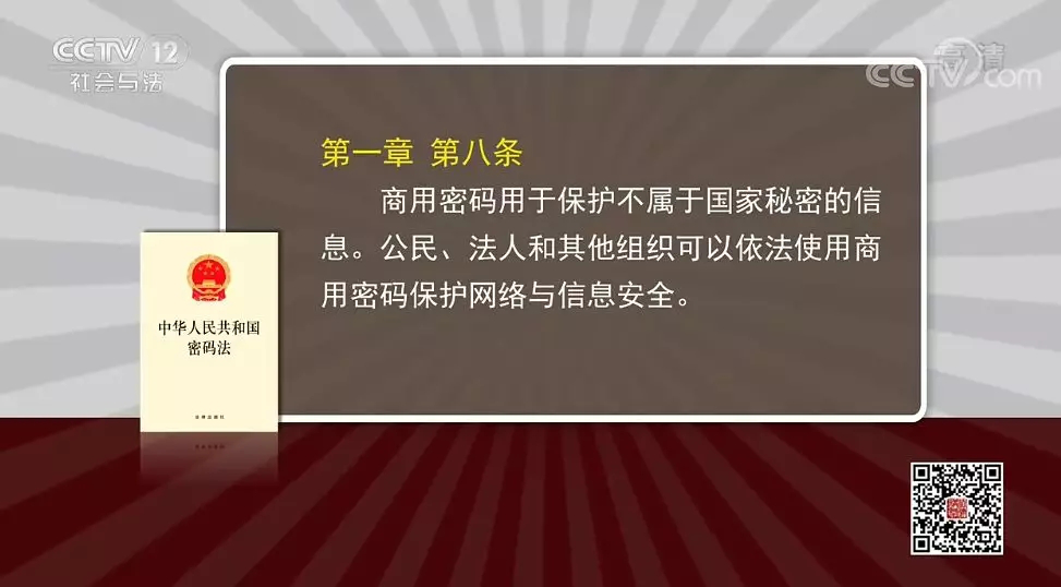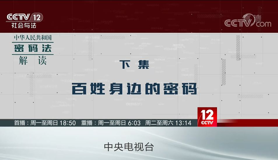 2019年10月26日,十三届全国人大常委会第十四次会议审议通过《中华人民共和国密码法》,构建国家安全法律体系的“四梁八柱”迈出重要一步,新时代密码工作法治化开启新征程。密码是保障网络和信息安全的核心技术和基础支撑,关系到国家安全、国计民生和社会公共利益。学习密码法,掌握密码基础知识,用密码维护国家安全和人民群众利益,保护个人合法权益。在《密码法》颁布之后,央视12套社会与法频道的《法律讲堂》栏目推出了密码法专题节目,特邀国家密码管理局新闻发言人李国海为《中华人民共和国密码法》解读。视频内容分为两集,上集为《保护国家秘密的密码》,下集为《百姓身边的密码》,分别针对从国家安全层面和普通群众生活层面进行解读。今天我们就借着这两集片子,从新认识《密码法》。