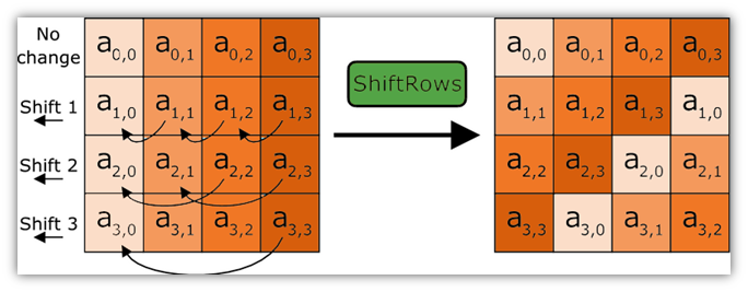 这是ShiftRows操作的说明性示例。