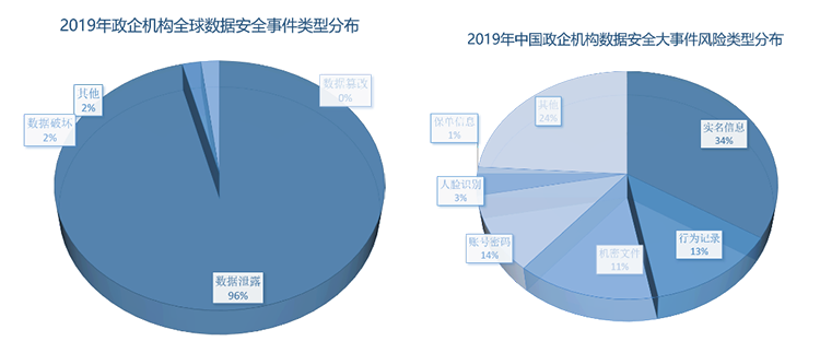 发布日期:2021-01-11从2020年上半年开始,更多的政企业务加速转移到互联网上,“互联网+”新业态得到快速增长,例如“互联网+政务”、“互联网+医疗”、“互联网+金融”、“互联网+教育”等,政企架构网络化和业务在线化已成为基础常态。随之而来的网络安全风险日益险峻,而且成为我国乃至全球网络安全产业持续健康发展的主要困扰因素。数据泄露、网络钓鱼、勒索病毒、网络诈骗等网络安全风险和威胁日益凸显。这其中,政企安全范围最严重的网络风险-数据泄露,占据96%。据市场公开数据显示,政企机构数据安全涉及实名信息数据泄露的数量占比34.2%、账号密码数据泄露的数量占比13.9%。