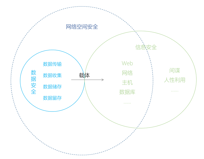 网络安全是以网络为主要的安全体系的立场,主要涉及网络安全域、防火墙、网络访问控制、抗DDOS等场景,更多是指向整个网络空间的环境。网络信息和数据都可以存在于网络空间之内,也可以是网络空间之外。“数据”可以看作是“信息”的主要载体,信息则是对数据做出有意义分析的价值资产,常见的信息安全事件有网络入侵窃密、信息泄露和信息被篡改等。而数据安全则是以数据为中心,主要关注数据安全周期的安全和合规性,以此来保护数据的安全。常见的数据安全事件有数据泄露、数据篡改等。