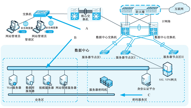 综合网站群系统密码应用主要解决各子站应用数据安全隔离、网站管理关键操作溯源及重要数据安全等问题。密码应用方案设计和密码应用安全性评估重点是网站群应用管理关键操作行为的不可否认和重要应用数据的保密性与完整性保护。