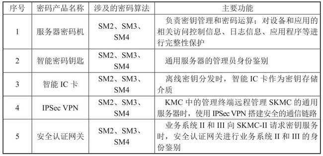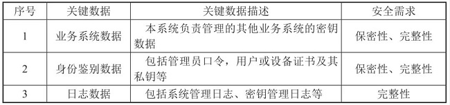 本系统包括的密码产品、通用服务器、关键业务应用和关键数据分别如表6~表11所示。