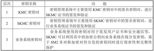 密钥管理系统中涉及的非对称密钥如下表所示。