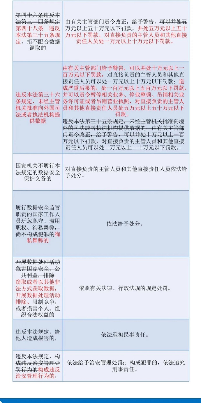 以下图文是根据数据安全法最终稿与二审稿的31条修改按照章节和分类整理做出的对比,划“删除线”的是二审稿的内容,“红色字体”是最终稿新增加的内容,方便大家稍作理解。
