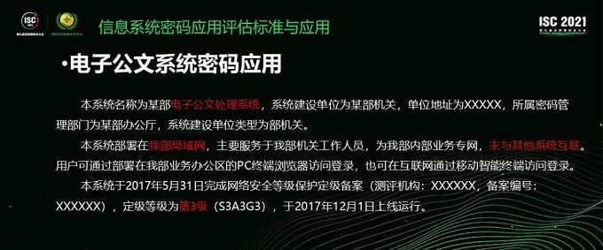 为了配合政府信息化管理办法,国密局2020年发布了《政府信息系统密码应用与安全性评估工作指南》,这个指南里有一个特别重要的示范,就是针对现在一个普遍的问题,像大部分建设单位不知道怎么去写这个方案,这部指南则给出了一些很好的例子。
