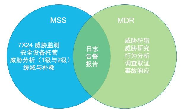 在国外,提供 MSS 和 MDR 的服务商有较大区别,MSS 服务往往由电信运营商、IT 服务商提供,MDR服务由专业的网络安全公司提供,但国内的 MSS 服务直接由专业安全公司提供。