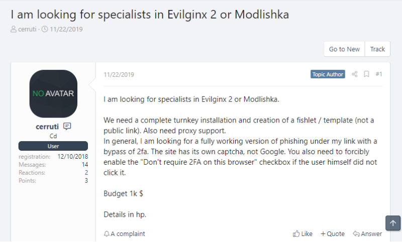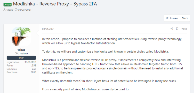 在上个月发表的一项研究中,来自石溪大学和安全公司 Palo Alto Networks 的学者表示,他们分析了这三个 MitM 网络钓鱼工具包的 13 个版本,并为通过其中一个工具的网络流量创建了指纹。他们利用研究成果开发了一种名为PHOCA的工具 ,该工具可以检测网络钓鱼站点是否正在使用反向代理,这是攻击者试图绕过 2FA 并收集身份验证 cookie 的迹象。研究人员表示,经 PHOCA 检测发现,2020年3月至2021年3月期间,网络安全社区报告为网络钓鱼站点的 URL中,发现1220个站点使用了 MitM 网络钓鱼工具包。根据 RiskIQ 研究员Yonathan Klijnsma 提供统计数据,2018年底至2019年初运行反向代理的网络钓鱼站点大约200个,与最新数据相比,这一数字有了显著增长。表明类似 MitM 网络钓鱼工具包在网络犯罪生态系统中逐渐流行起来。此外,这类工具包大多数黑客可以免费下载,且易于运行。黑客论坛上有大量的教程及协作请求,来帮助威胁者熟悉这种新技术。