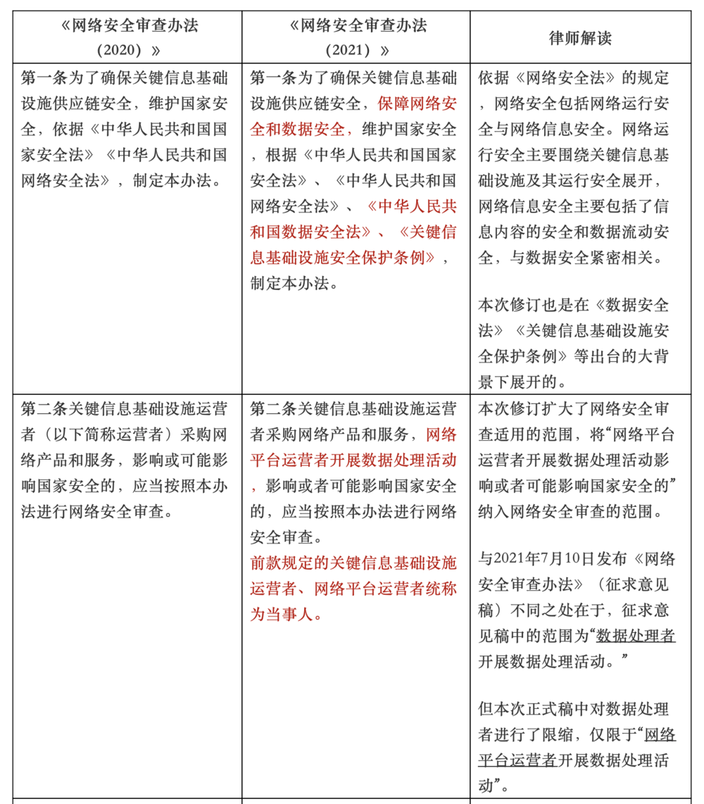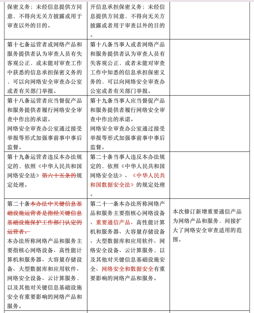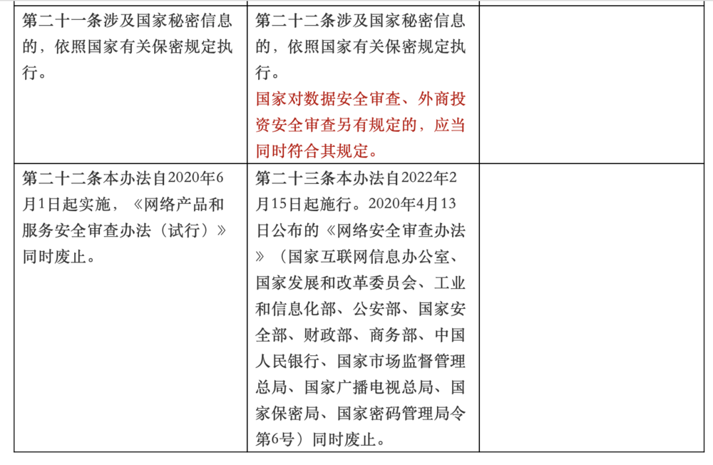 本文将通过对新旧《网络安全审查办法》逐条对比,重点突出修订条款并进行解读。新旧《网络安全审查办法》的对比与解读如下: