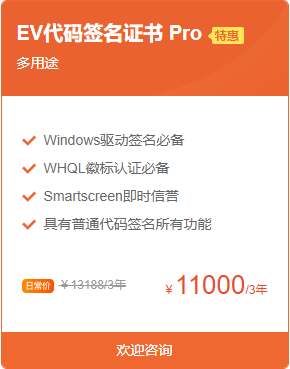 沃通CA同样推出了代码签名证书特惠活动,在开年采购季活动期间,EV代码签名证书 Pro 3年期低至8.3折!一次采购,定期颁发,省时省力!