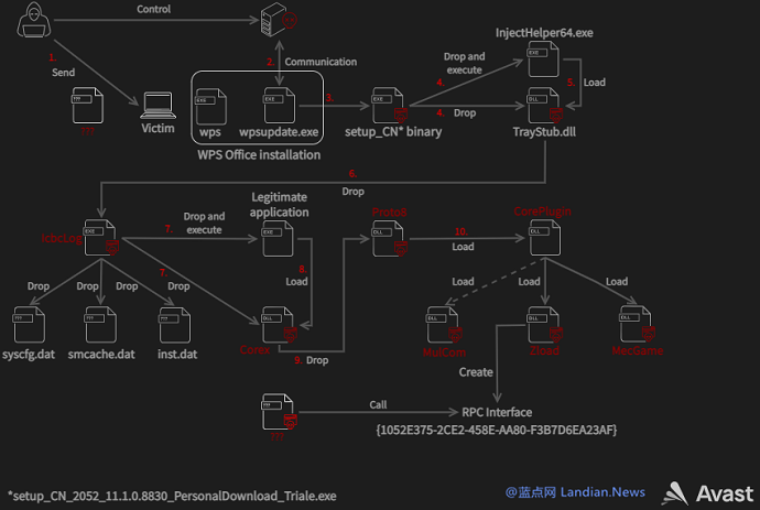 安全公司分析发现黑客使用的工具集比较复杂且属于精心制作的,显然这是个黑客团伙而不是单个黑客行为。该黑客团伙使用复杂的工作流程实现持久化和自我更新,即感染目标设备后可以随时更新模块实现恶意行为。攻击目标则主要是位于东南亚的非法博彩网站,目前有不少诈骗团伙躲在东南亚尤其是菲律宾架设博彩网站。这些网站是黑客的主要目标,但问题在于通常这类非法博彩网站经常被同行攻击,因此安全防御不会特别差。那黑客怎么打开突破口呢?答案就是冒充金山向向诈骗团伙发送带毒电子邮件 , 里面包含虚假的WPS安装包。