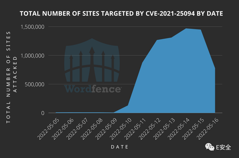 Wordfence报告称,其客户遭受了数百万次攻击,该公司在2022年5 月14日阻止了高达590万次的攻击尝试。在接之后的几天里,攻击数量有所下降,但漏洞利用仍处在高水平。