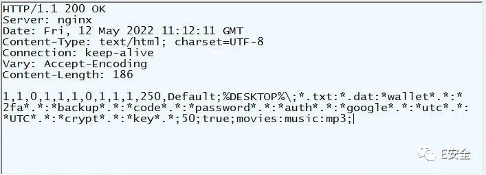 从下面的恶意软件配置中可以看出,C2指示恶意软件搜索和窃取各种文件,包括文本文件、加密货币钱包、备份、代码、密码文件和身份验证文件。