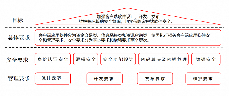 《移动金融客户端应用软件安全管理规范》(JRT 0092-2019 ),分别从技术和管理两个层面展开,对移动金融客户端应用软件以及客户端应用软件设计、开发、维护和发布的管理做出了明确要求。